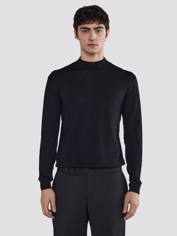 MAGLIA COLLO MOCK IN MERINO E SETA