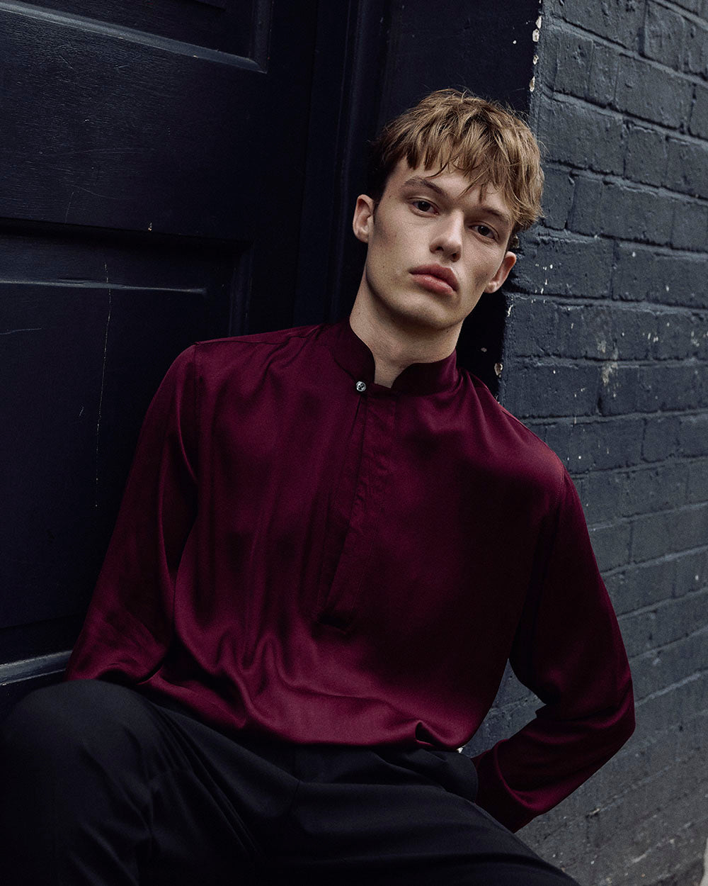 CAMICIA IN LINO CON IMPUNTURE A CONTRASTO